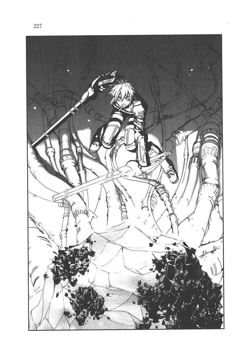 立足点突然失去了力量。与大地相连的钢丝被扯出来了。飞向天空的雷冯抓住了钢丝状态的青石炼金钢的柄防止落下。然后就那样利用单摆原理移动到了在头上回转的污染兽的上方。