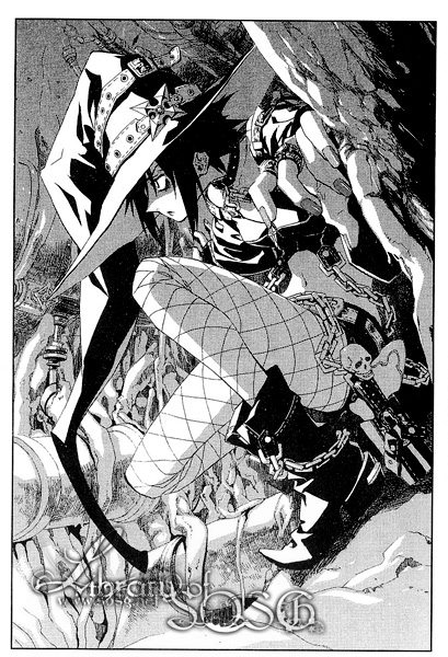 帕梅琳舞动手中的炼金钢挥去残热。到刚才为止一直握在手中的手枪,则是挂在她缠在身体上的锁链上面。