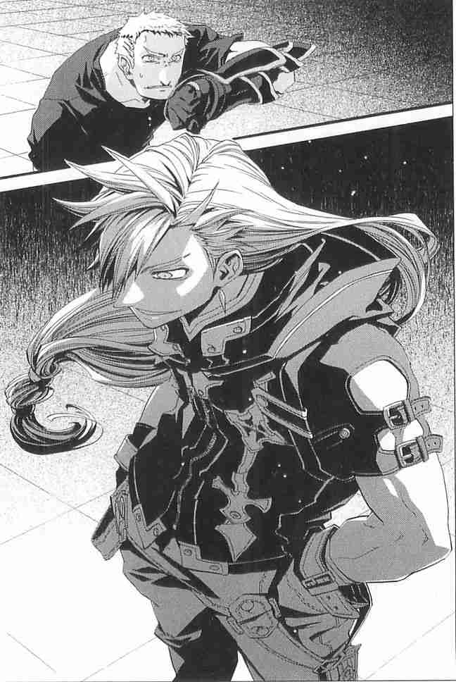 利瓦斯毫不在意周围的刭气靠了上去,他那坚硬的外套表面不断地接受着冲击,但无论是外套,还是脱下头盔的头部都没有留下伤痕。