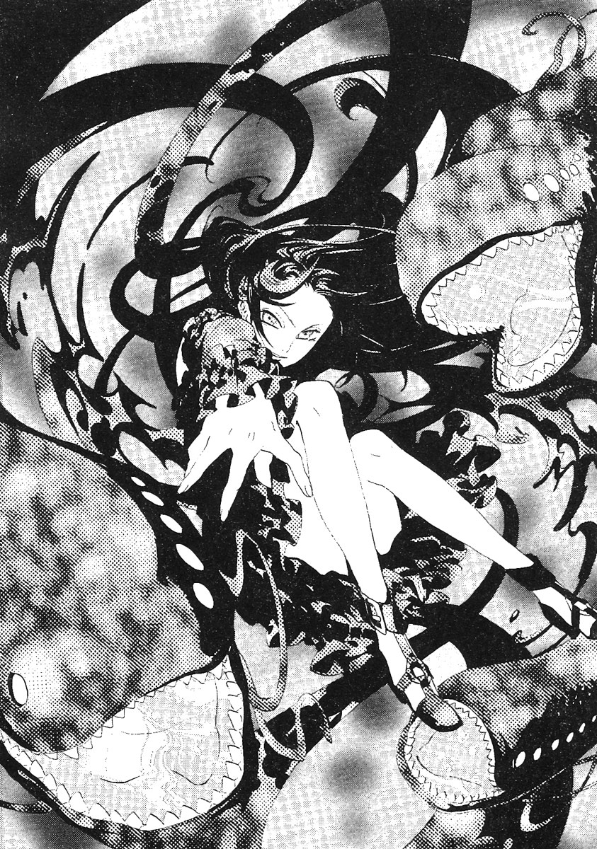 被黑衣所缠绕着的,梦幻一般的少女。没有血色通过般的雪白肌肤。被风吹起的黑发仿佛要劈开黑夜。