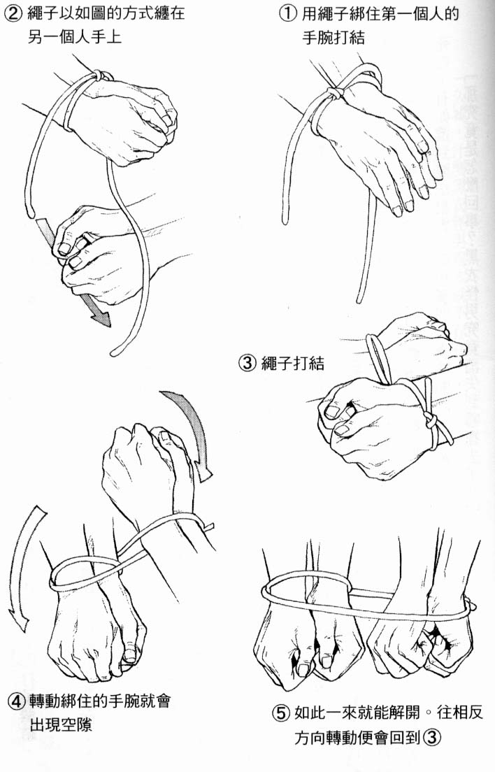 「这就是称为『活结』的打结方式。乍看之下好像紧紧绑住,其实轻轻松松就能解开。告诉你,这就是魔术手法。」