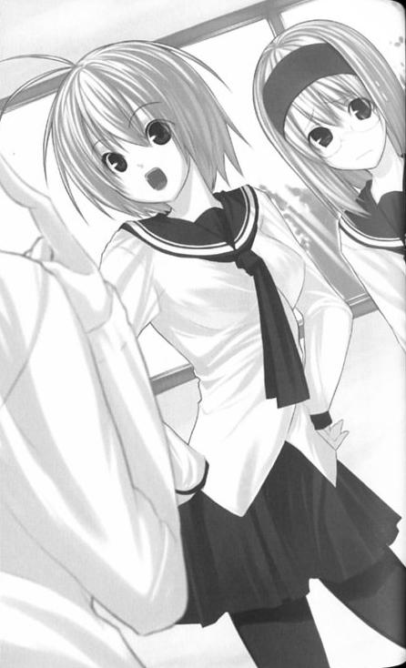 站在玄关前吓了一跳的,是一个叫美嶋红音的女孩子,和我一样就读星铁学院,是二年级的学生,这个戴眼镜的女孩视线总是朝着地面,散发着一股柔弱的气息,我跟她是因为某件事的关系认识的,这个也稍后再说明吧。「嗯……那个……名津流同学……」