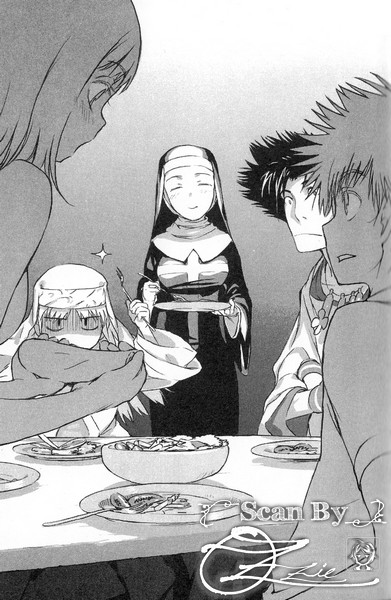 建宫跟天草式的成员从其他的船搭造木桥跳上船,形成人墙挡在安洁莉娜跟修女们之间。