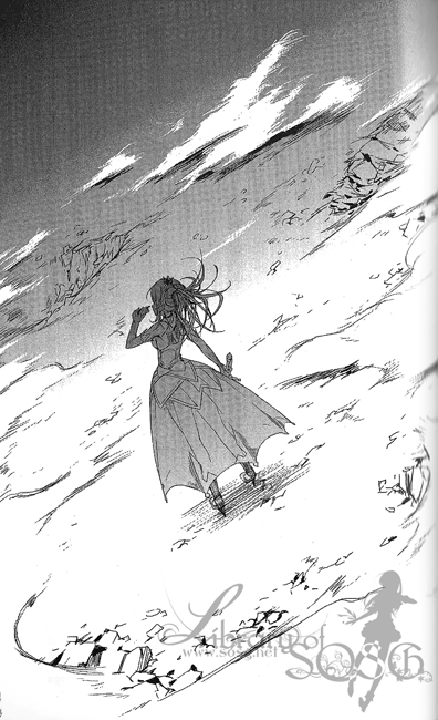 少年或许是想赌上一点微小的可能性,他环顾四周找寻联络女巫罗盘和海妖水族箱的通讯用灵装。但是要在因飞弹而化为一堆瓦砾的宫殿腹地中,找出灵装相当困难,而且缺乏魔法知识的他,就算东西掉在他附近,他可能也不会发现。