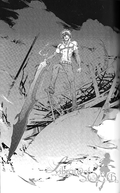 原本正打算冲向凯莉莎的上桑,被爆炸产生的风震得向后倾倒。巨大的电塔倒在沙尘漫天飞舞的瓦砾堆,电塔的残骸上方站着一个人。那个魁梧的身影,低头朝向下方的凯莉莎说道: