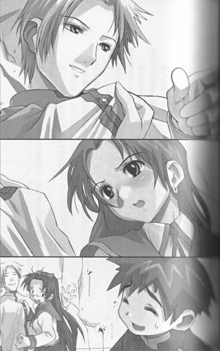 绚子以认真的眼神聆听着护的话。护突然想起了「那个人」,把他和绚子重叠在一起,护感到动摇。绚子的眼眸里连一点阴霾都没有,闪耀着自信与希望,眼中蕴含着好像一碰触到就会被她斩断的强悍,看来正像是护所幢憬的那双眼眸。