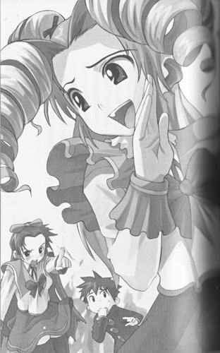 绚子轻喝一声一跃而起,抱着护降落在汐音身上。汐音「呜」地翻了白眼,惨遭击倒。